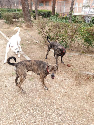 Adoptado desde hace mes y medio. Ha cambiado la conducta desde el perro sumiso y dócil que adoptamos a un perro que no puede pasear normal si no llevaa correa tirando, va casi sin respirar y cuando ve algún perro se lanza a él, no para morderle sino para jugar, pero no mide lasfuerzas y nos tira a nosotros también