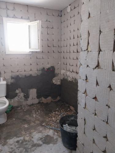 Albañiles para trabajo en paredes en vivienda unifamiliar