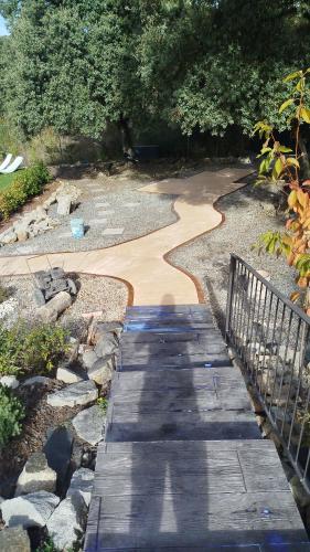 Necesito hacer una plataforma y alicatarla para poner pérgola, las medidas son 4x5 aproximadamente. También quiero cambiar baldosas de la escalera de bajada, 5 peldaños Y, hacer un muro de bloques de hormigón, o en función del presupuesto poner un bordillo. En otra puerta de acceso hacer dos peldaños.