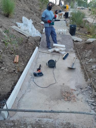 Albañiles para solar entrada con piedra losa