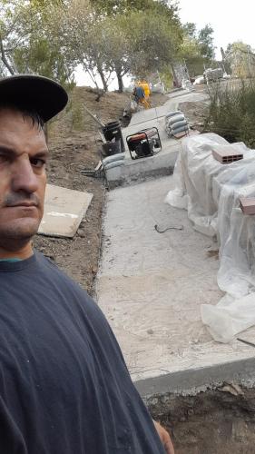 Albañiles para trabajo en muro de contención en vivienda unifamiliar