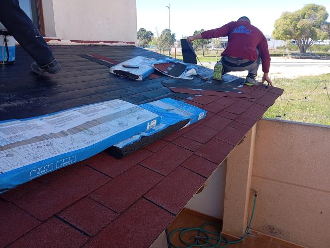 Albañiles para cambiar tela asfáltica