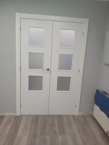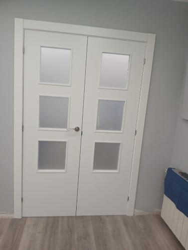 Necesito montar 8 puertas en block, blancas lacadas, las tengo en casa , he sacado las viejas y he dejado el premarco, solo necesito poner las nuevas ya que lo veo algo complicado para mí. He comprado botes de cola para pegar y espuma para rellenar.