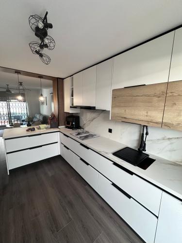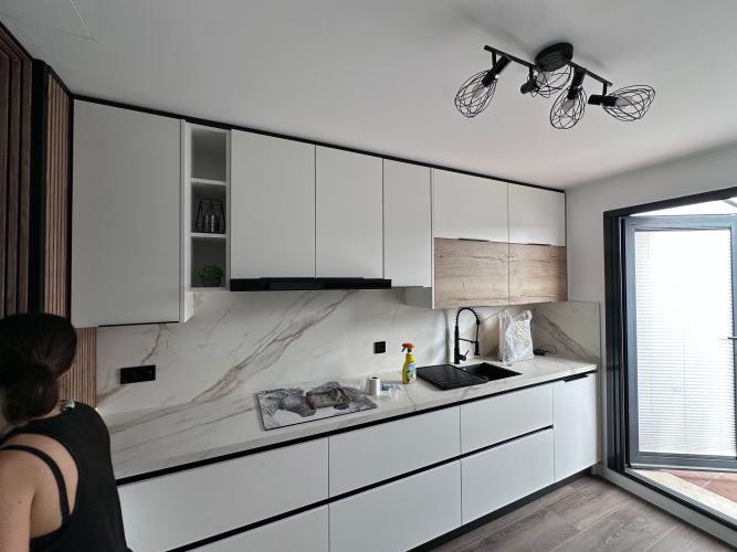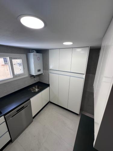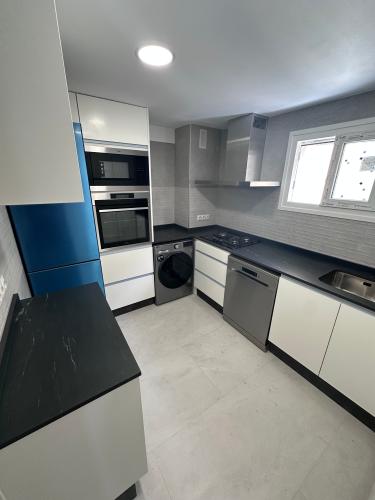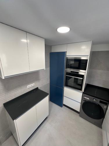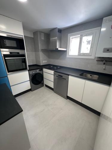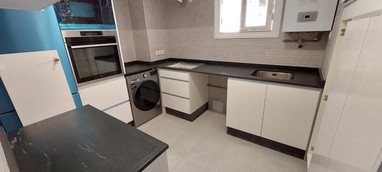 Es para quitar un módulo de la cocina para poner un lavavajillas. Hay que hacer un agujero en el módulo de al lado para la toma de agua. Creo que en la parte de arriba tiene una madera que está pegado a la encimera de la cocina. También habría que quitar un zócalo de piedra que rodea la cocina por el suelo.