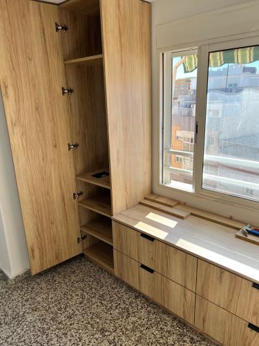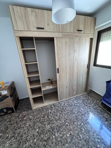 Actuaciones a presupuestar: 5 armarios empotrados, para poner cajoneras i/o estantes. En uno de ellos(de tres puertas) cambiar las puertas abatibles por correderas En la cocina poner puerta corredera en alacena y añadir un módulo para ampliarla zona de trabajo Dar alguna solución de almacenaje al hueco de la escalera