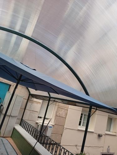 Presupuesto con cortinas de cristal en forma de c, con dos lados de 2,5m y otro de 12m Hay tres columnas, y una estructura de hormigón en el techo, a la que se puede fijar sin problemas la estructura de cristal para el techo. El techo de cristal deseo que sea motorizado