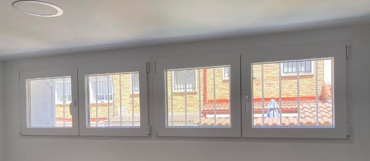 Sustituir 5 ventanas, en aluminio con rotura de puente térmico, con cristales de seguridad climaguard 4+4/16/4, oscilobatientes, con persianas eléctricas autoblocantes con mando a distancia. Color interior blanco, exterior ral 7032. Las medidas son: ancho por alto 60x98 105x104 56x98 54x98 84x205