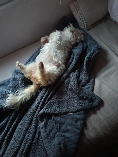 El perro es un perro bueno, pequeño, lo que con carácter y muy territorial… suele ser al principio pero luego se adapta fácil al cabo de un rato, hemos cambiado varías veces de casa este año y lo hemos que tenido que dejar con familiares, está ahora mismo adaptándose a la vida en casa, y es muy mimoso. Al darle paseo el perro suele dormir bastante y ser tranquilo