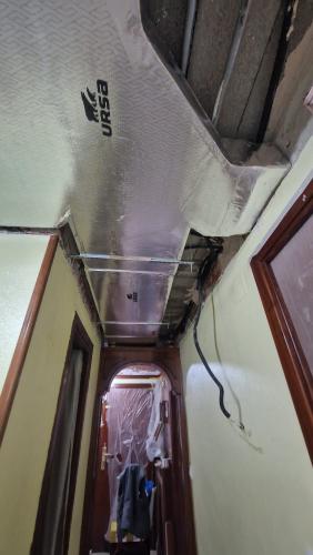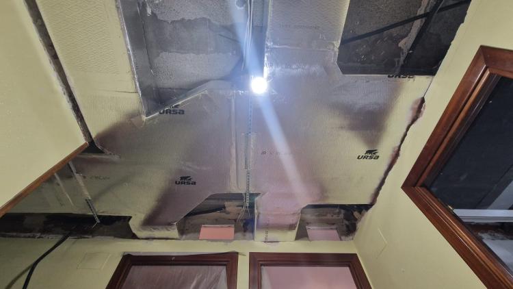 Se trata de una galería cerrada donde habría que poner techo (actualmente hay lamas típicas de techo de galería) y poner tarima en suelo, poniendo previamente algún material de impermeabilización pues esa galería da salida a una terraza donde hay justo uno de los sumideros y de hecho veo manchas de humedad en los bajos de la pared (a la altura del rodapié). La galería tendrá 2,30 m2 aprox.