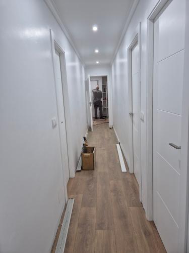 Me gustaría un presupuesto orientativo de instalación de tuberías vista de agua. La de la cocina ya está. Habría que empatar desde la cocina hacia los baños. Uno con bañera, bidé, retrete y lavabo y el otro con retrete y lavabo. Sé que sin verlo es difícil, pero algo aproximado. Si nos convence el presupuesto habría que realizar la obra en esta semana del 17 de noviembre al 22, porque hay...
