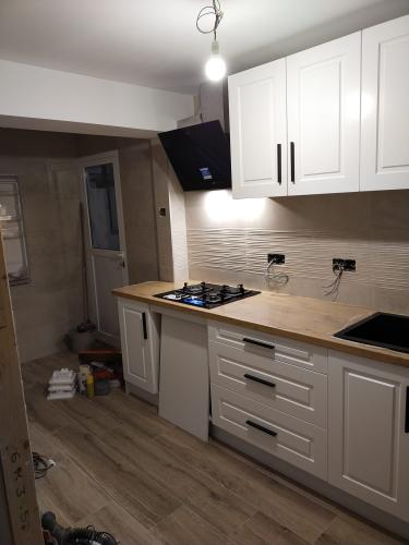 Se trata de preparar el desagüe y entrada de agua para cambiar los muebles de la cocina. También es necesario poner un par de puntos de luz nuevos para la instalación de los electrodomésticos.