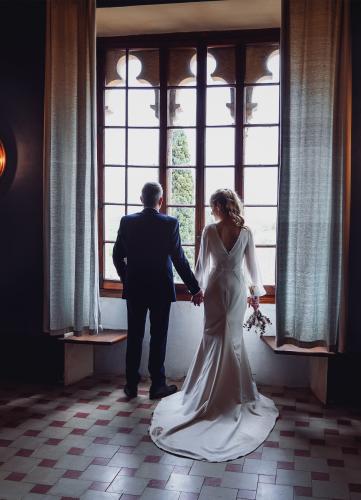 La boda es en el castillo de escornalbou en riudecanyes y el banquete en cambrils. Foto solo ceremonia y comida, boda civil intima