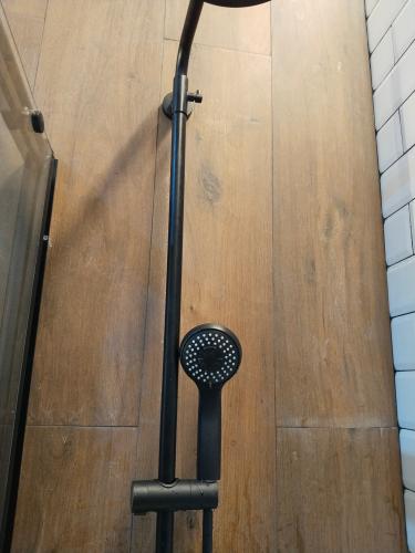 Es una pared contigua del cuarto de ducha, la mancha sube la pared, es un área de 1 metro de alto por 50 centímetros de ancho.. No se el origen, no tienes charcos, solo se ve l mancha ascendente en la pared y tiene como 1 año.