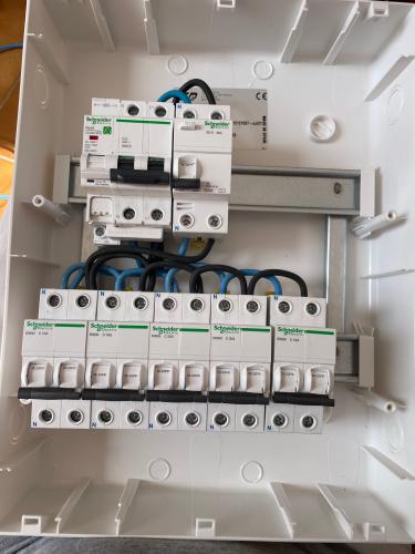 Buenas tardes y disculpe el retraso Este sería el plano con la instalación eléctrica. Se supone que fue remodelada en 2006, y en 2016 se hizo otra cambio de cableado. La vivienda es de 50m2. 5 puntos de luz de techo, 2 puntos de luz de pared (opcional-Hay cableado), 5 interruptores, 6-8 enchufes + 2 nuevos (opcional-Hay cableado). El cuadro de luz no se si es nuevo pero no lo...