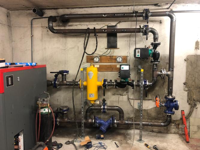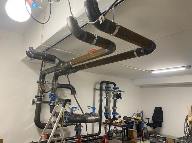 Queremos instalar una estufa sueca en la casa en octubre. Compramos la estufa y la tubería. Hay que hacer los siguientes trabajos: -Taladrar un agujero en la pared exterior para la tubería -Montar el tubo -Sellar el agujero
