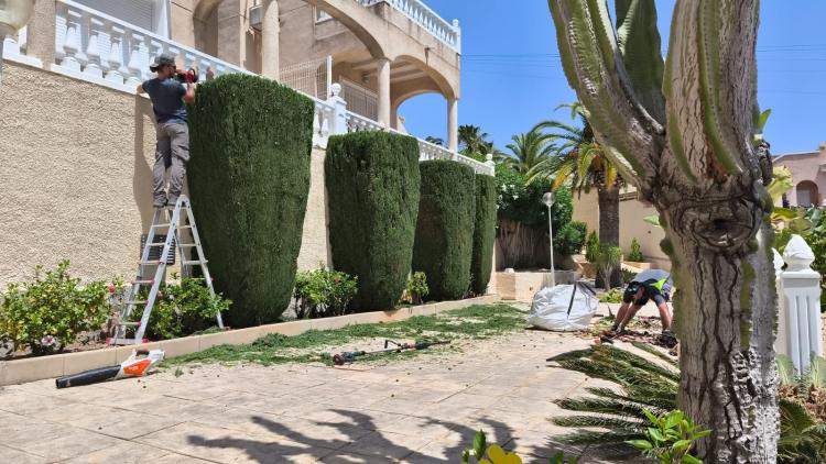 Jardineros para recortar árbol cipreses retirarse y dejar todo limpio, poda de 50 o mas