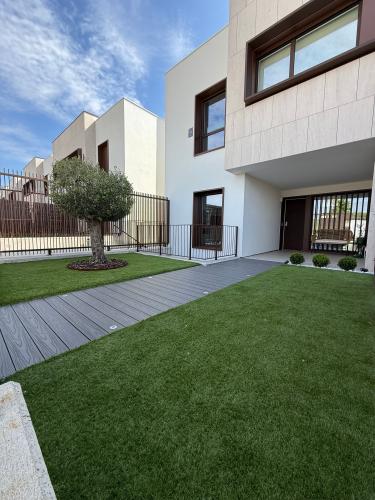 Recortar enredaderas de parte delantera y trasera. En la parte de atrás hará falta andamio o similar. Hay cesped artificial pero en las orillas crecen malas hierbas. También habría que limpiarlo todo. Los restos se los tienen que llevar, no tengo contenedor.
