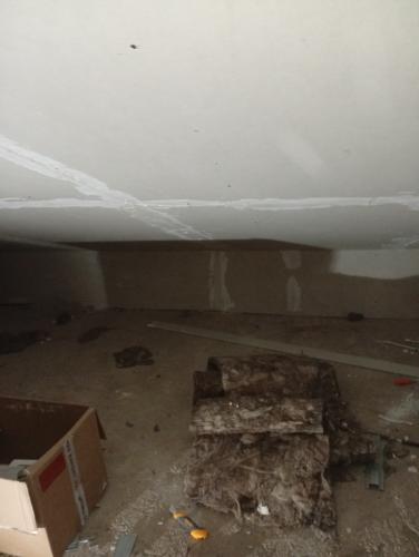 Se tiene que hacer un agujero en el mueble del fregadero para poder empalmar los tubos de desagüe y otro en la pared para descubrir el otro tubo de desagüe y hacer empalme con codo, se tiene que hacer más bajo ya que la instalación posterior se puso muy alta...