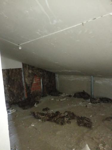 El atasco lleva ya meses ahí sin que le tiráramos más que un poco de agua de vez en cuando, la última vez lo desatascaron con una maquina "a presión o de vacío" ya que probamos de pasar la manguera pero no funciona y la tubería de desagüe tiene muy poca inclinación y por eso se atasca.