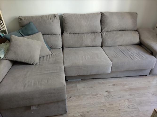 Buenos días. Es un chaise longue de 3 plazas de tela, color gris verde o gris azulado, de IKEA. Tamaño estándar, 2,5 m de largo. Tiene el problema del olor de orina infantil y la mancha dejada. Intenté limpiarlo y no pude. Necesitaría conocer el presupuesto de limpieza, por favor. Muchas gracias