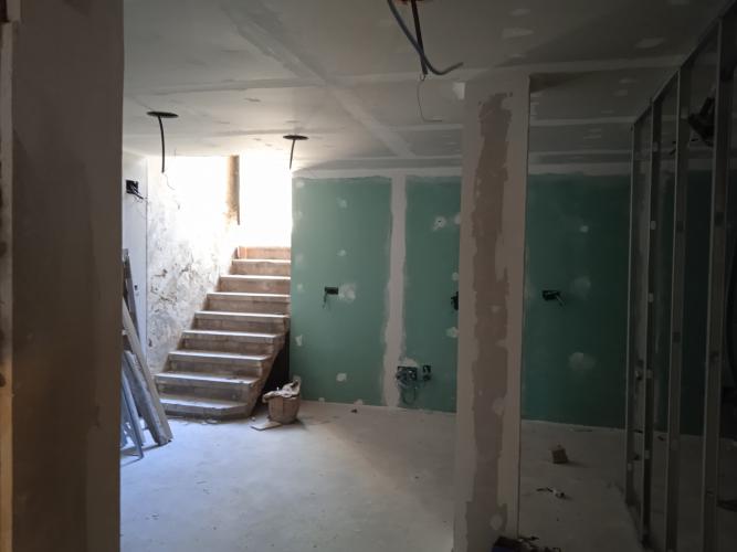 Sería sustituir 32 ml de escayola en tres habitaciones: una cocina, un baño y un dormitorio y proceder al pintado de sus respectivos techos, un total de unos 21 metro cuadrados. Hay que limpiar y de capar bien las superficies ya que hubo antiguas filtraciones de agua. Ahora están secas