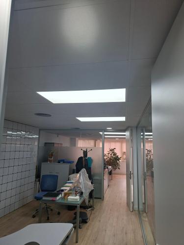 La luz del baño es de led, empotrada, pero a veces no se enciende. Probamos cambiando la bombilla pero sigue igual. En cuanto a la pintura, en el techo se ha desconchado un trocito, tenemos la pintura y rodillo para volver a pintar, solo necesitamos a alguien que pueda hacerlo.