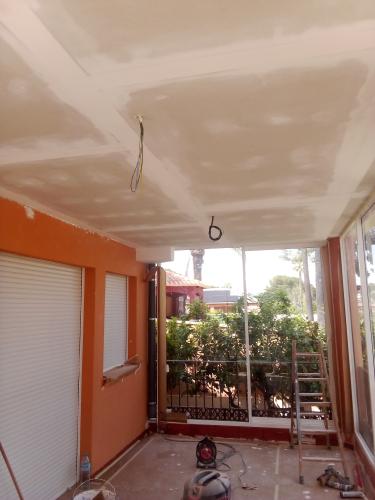 Solo tenemos que alisar los techos y 2 habitaciones pero si seria pintar todo lo demas menos la cocina y el baño