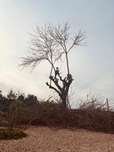 Sería cortar una palmera una palmera que está ya muerta y sin ramas y podar un aguacate de unos 5 metros
