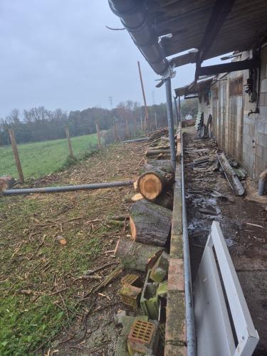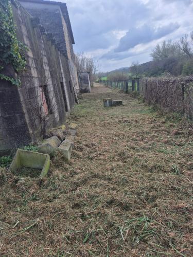 Hay que retirar parte de la hiedra del muro y sus raices mas dos pequeños arboles y unos arbustos