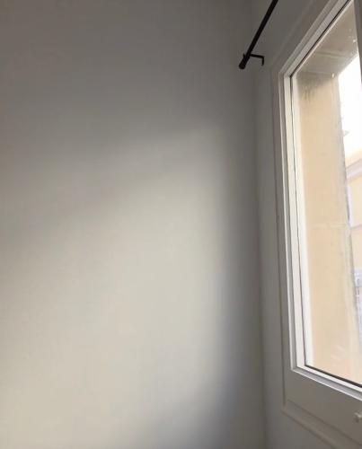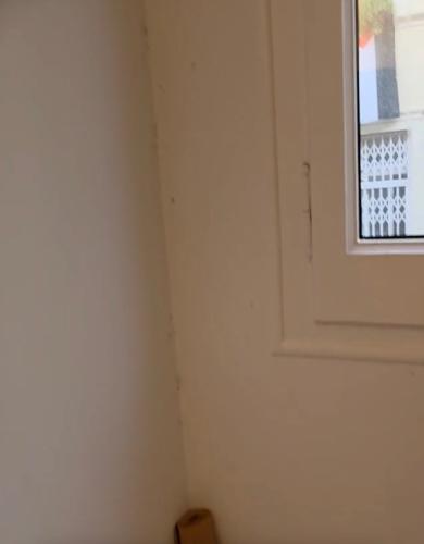 Es una habitación pequeña con paredes lisas de un piso semi nuevo. Solamente tiene algunos desperfectos en una de sus paredes debido a haber quitado restos pegamento de cinta de doble cara que anteriormente había, con acetona.