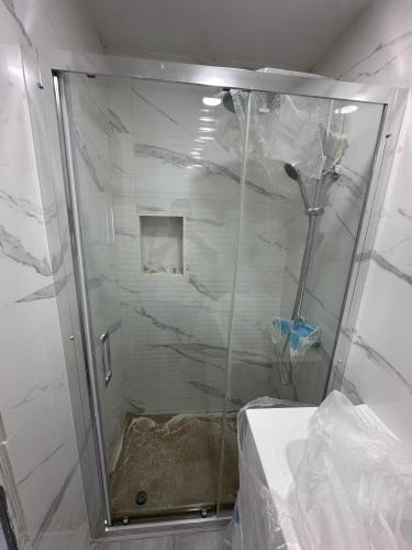 Tengo un balcón interior que comunica el salón y el vestíbulo del segundo piso, de 87 cm de ancho por 234 cm de alto. Actualmente tiene una barandilla de cristal. El trabajo consistiría en retirar la barandilla existente y cerrar el hueco completamente con azulejos de vidrio o pavés.