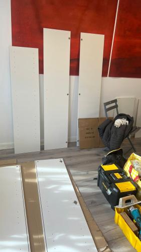 Hay que reparar algunos cortes debido a la instalación de 2 aires acondicionados. Una habitación hay que reparar la eliminación de un tabique. La cocina hay que poner el techo al nivel del comedor (ya que la hemos abierto) y rematar esquinas.