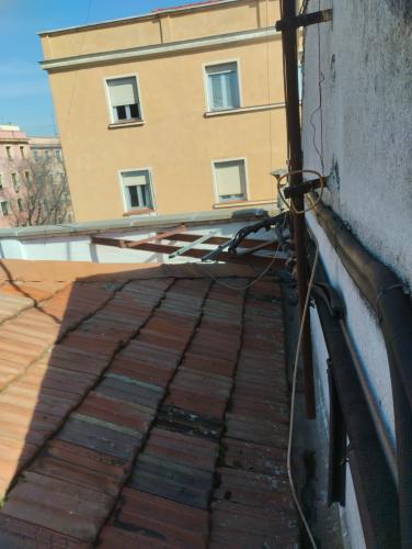 La instalación del compresor está en la azotea. De donde salen dos tuberías de cobre y un corrugado para el cable, todo esto va dar al techo del baño;desde ahí hay que llevarlo al resto de habitaciones por un falso techo