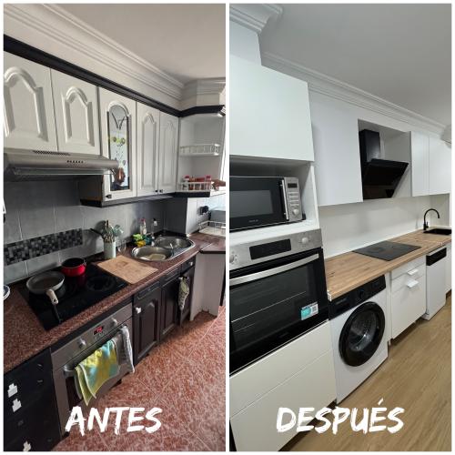 Necesito instalar horno más vitrocerámica y campana extractora.... En cocina con encimera de aglomerado y poder dejar el hueco de la placa cuadrada y no redondeada como es ahora .... El horno iría debajo en el hueco y retirar el antiguo y en el tema de la campana querría poner una moderna y quitar el mueble donde se apoya la vieja campana ... Las medidas son estándar y es cocina vieja...