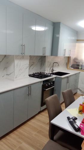 Es un piso de alquiler. Tiene las paredes pintadas con un color crema. La pared tiene gotelé. Quiero pintar toda la casa de blanco. Incluido techo si lo necesitara.