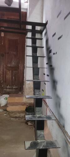 Sustituir la puerta por corredera( misma puerta pero con riel arriba, cambio de pomo por tirador y cierre de puerta) sacar el contador del cuarto de baño al patio de luces) colocar wc en otra pared, cambiar de sitio la pila y el calentador.