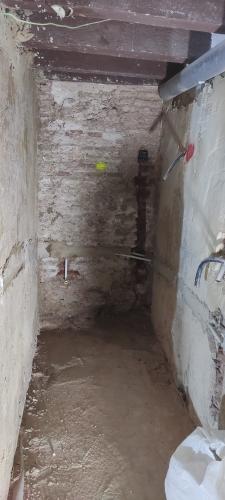 El baño original de cuatro piezas, se reformará a un aseo y un baño de tres piezas. Implica hacer tabique para división, abrir acceso para aseo, colocación puertas y ventanas, nueva instalación de lavabos y plato de ducha, alicatado, suelo nuevo, etc.