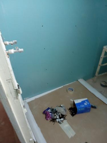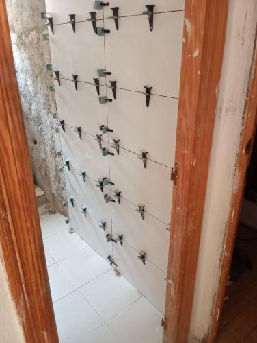 La idea es cambiar suelo, y dejar azulejo en el frontal de la cocina. El resto de paredes alisado normal. Quiero dividir la cocina en dos, ya que es grande y puedo sacar una habitación pequeña con pared de pladur.