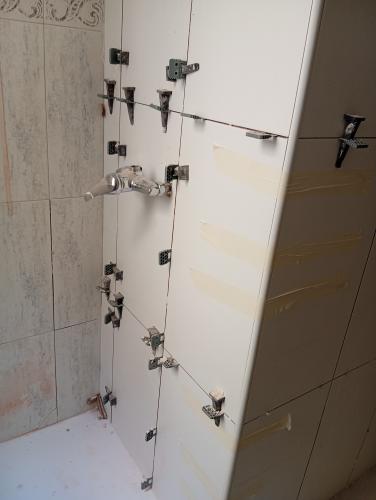La cocina es antigua, hay que tirarla entera. Tengo el carpintero que suministra e instala la cocina, pero necesita asistencia por parte del albañil. El albañil debe quitar la cocina actual al completo, quitar los azulejos de la pared de los muebles de cocina (solo 1 pared), quitar el poyete de la cocina actual, colocar nuevos azulejos de suelo a techo con doble encolado.