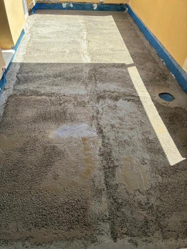 Tengo una azotea donde habría que poner lechada con caída ya que solo está pintada y hay baches donde se empoza el agua. Y hay una azotea más arriba, pero falta hacer una escalera y abrir la puerta en la pared que hace de barandilla. Quizás poner lechada y suelo o césped artificial arriba también.