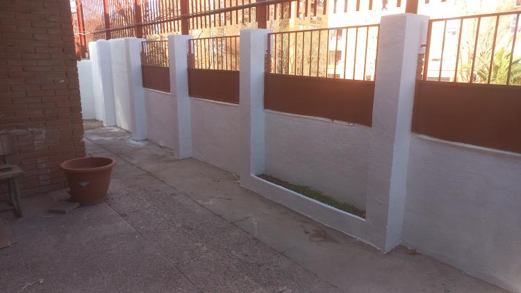 Tengo un adosado que la constructora que tenía me ha dejado tirado . Poner solera en patio trasero más solar, solar garaje 60 metros, planta baja 65 metros. Primera planta 60 m. Buhardilla 25 más escalera. Hacer muro de un metro de altura laterales del patio 8 metros cada uno