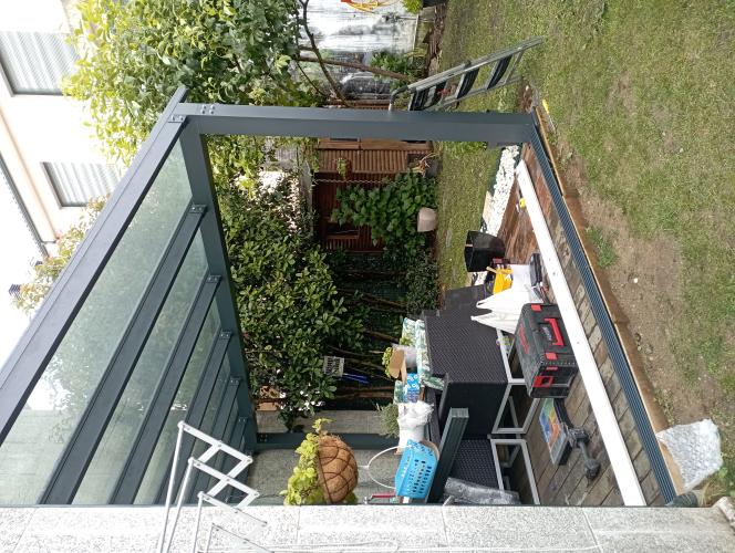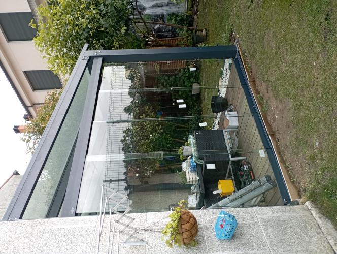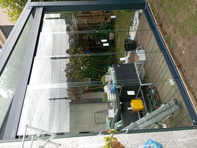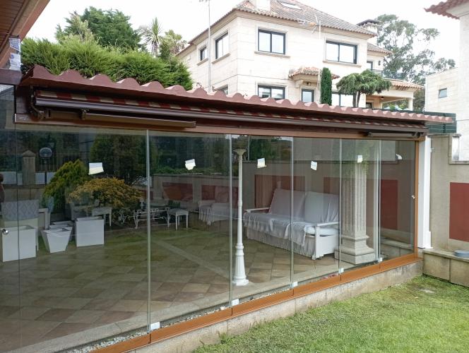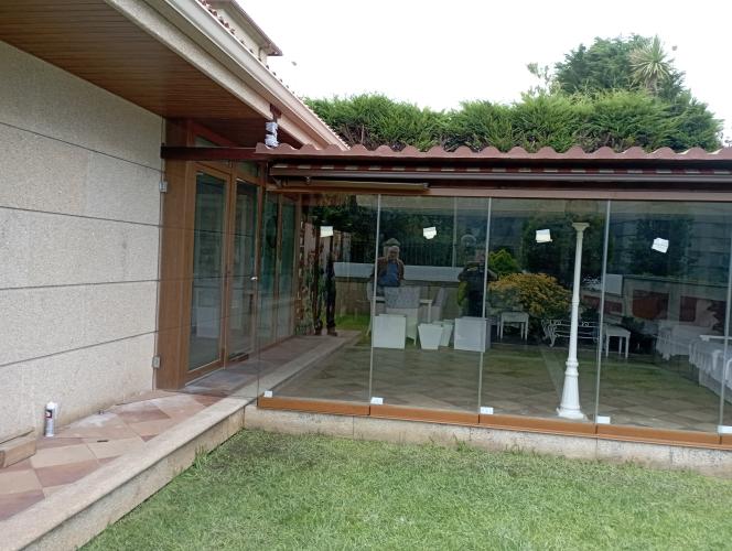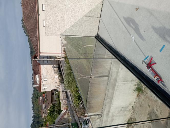 Es un patio de dos alturas el de aba quedaría siempre cerrado y el de arriba quiero que se abra para el verano com material transparente ya sea cristal o plástico y aluminio o pvc me gustaría los dos presupuestos